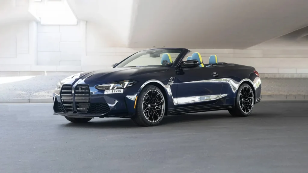 Book your BMW M4 Convertible Blue rental in Umm Al Quwain today!