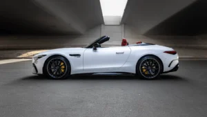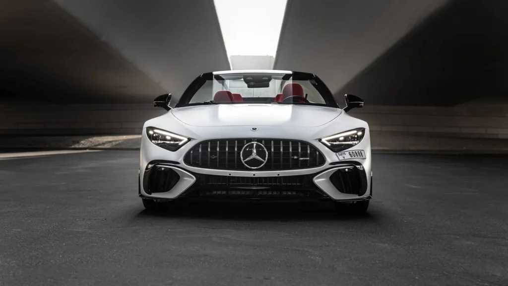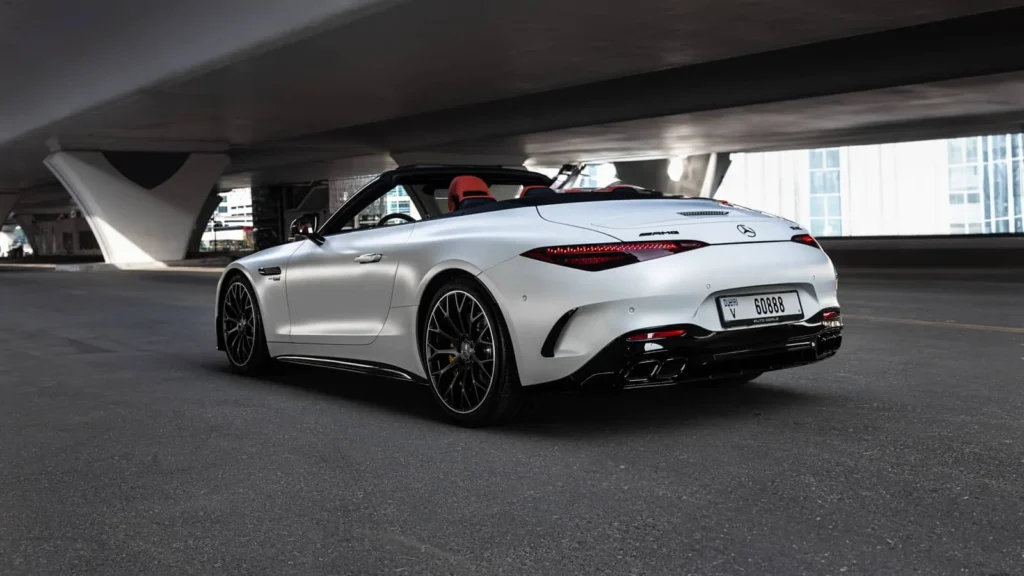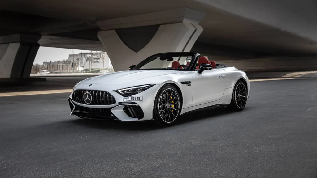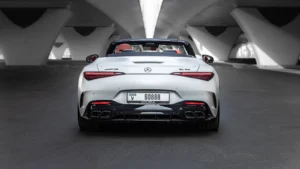 Book your Mercedes SL63 AMG White rental in Umm Al Quwain today!